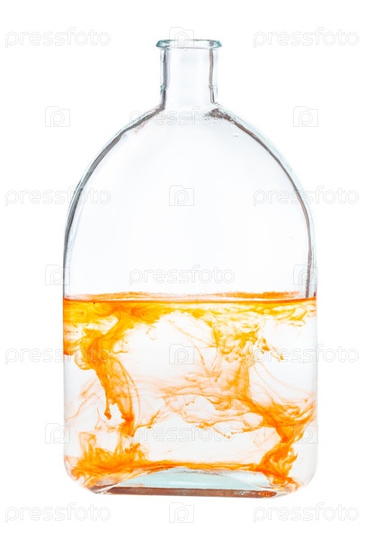 Оранжевая акварель, растворяющаяся в воде в колбе