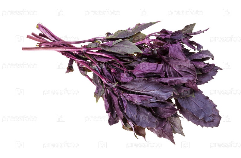 Пучок свежей темно-фиолетовой травы базилика изолирован