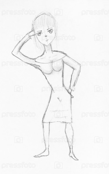 Эскиз танцующей девушки, нарисованный черным карандашом