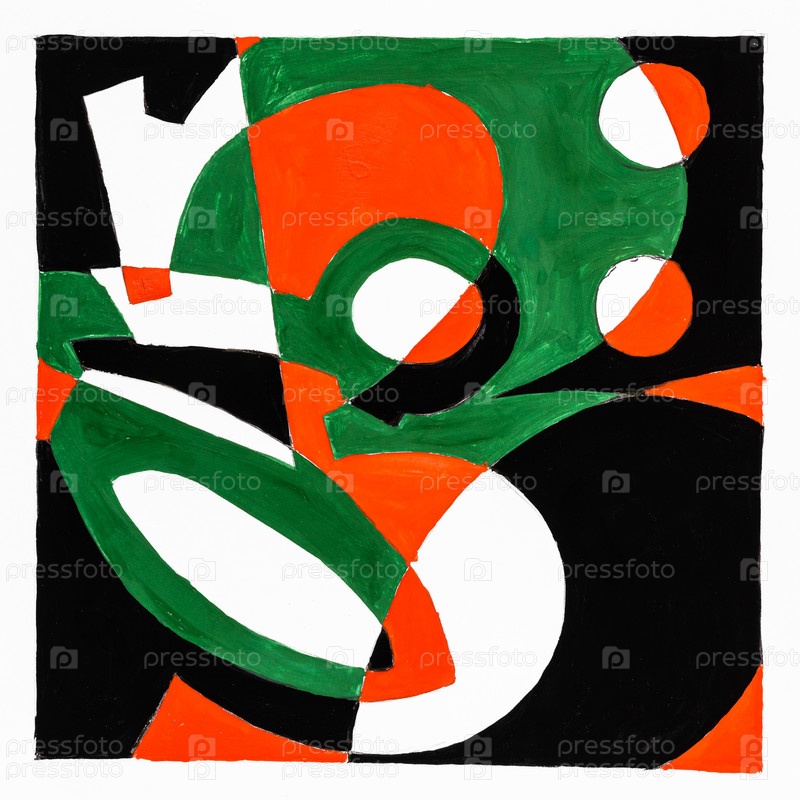 Абстрактная композиция с цифрой и ручкой-ножницами