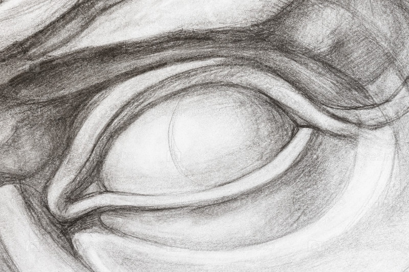 Мужской глаз, нарисованный вручную графитовым карандашом крупным планом
