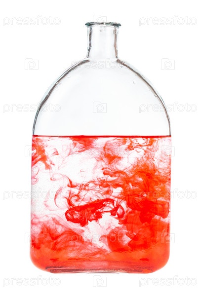 Красная акварель растворяется в воде в бутылке