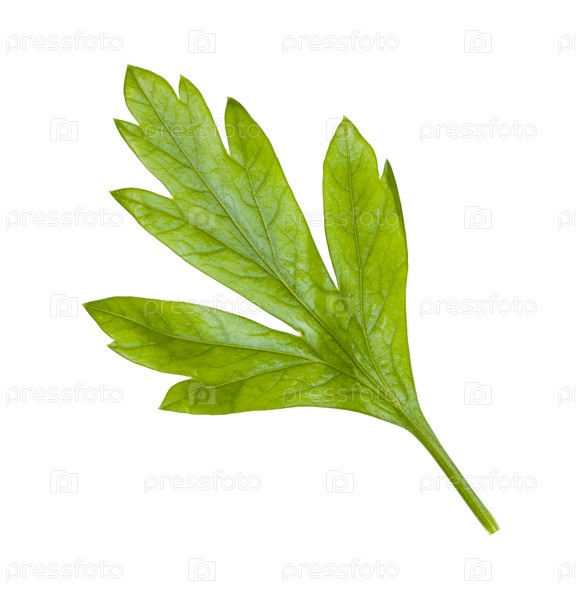 Задняя сторона свежего зеленого листа петрушки изолирована