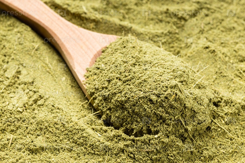 Деревянная ложка с измельченной травой стевии ребаудианской