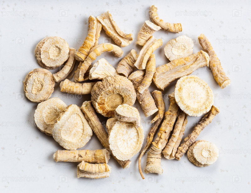 Нарезанные сушеные корни петрушки крупным планом на сером