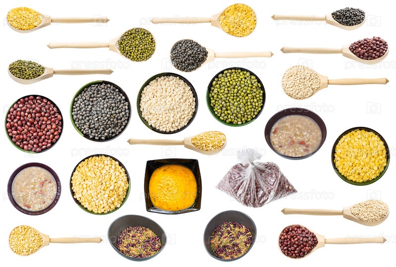 Набор различных бобов мунг, изолированных на белом