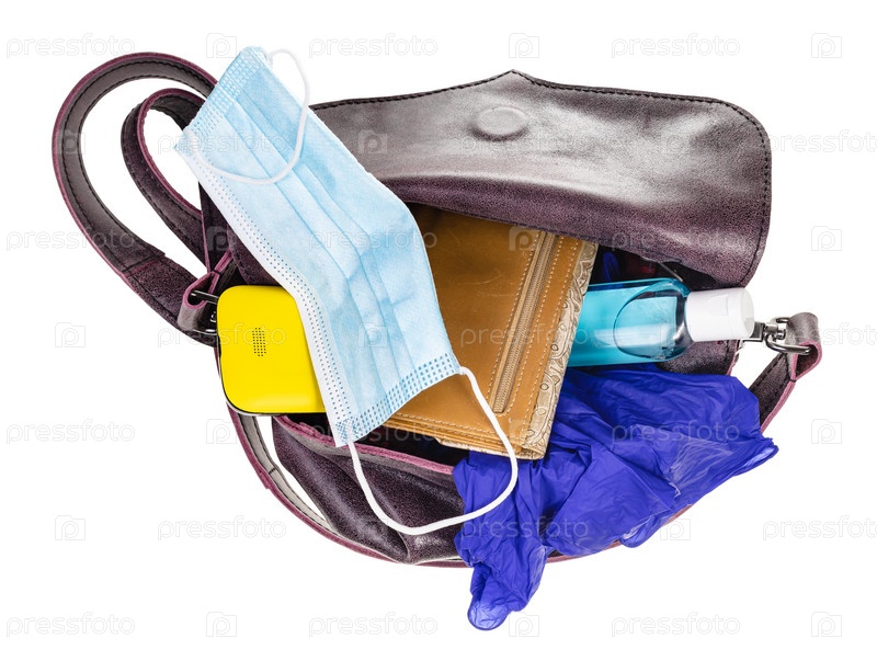 Вид сверху на женскую сумку с защитной маской