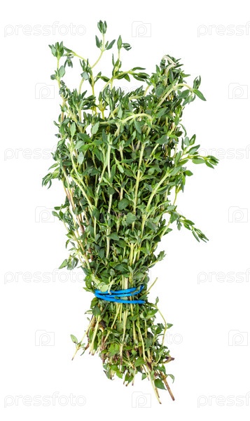 Пучок свежей травы тимьяна, изолированный на белом