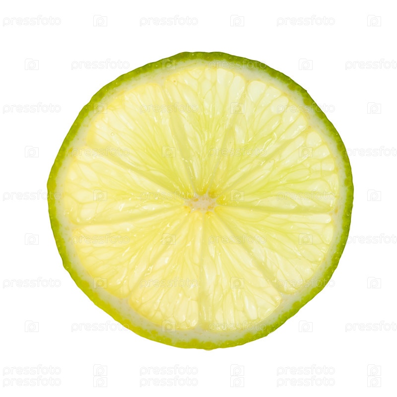 Тонкий ломтик свежего лайма, зажженный сзади изолированно