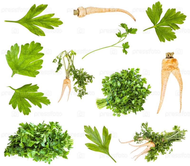 Изолированные корни и зелень петрушки