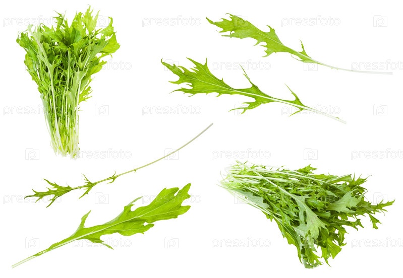 Листья и пучки японской листовой капусты мизуна