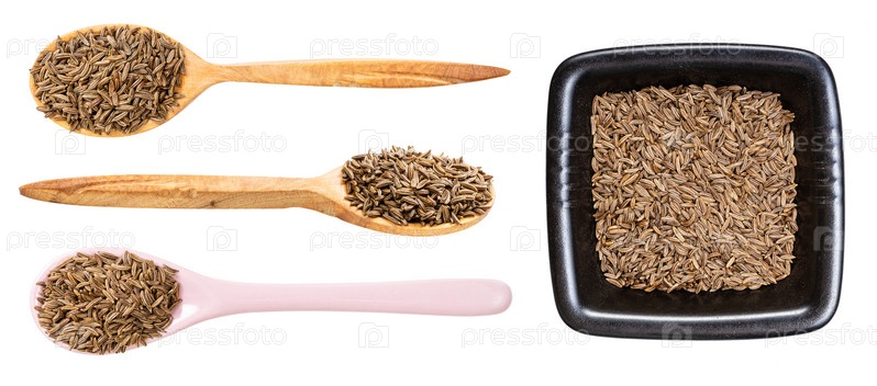 Набор различных семян тмина, изолированных на белом