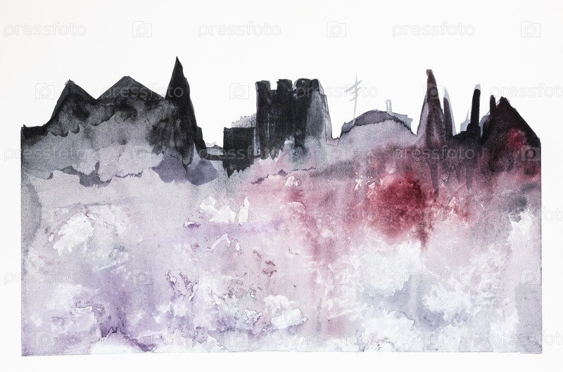 Ручной силуэт старого европейского города в сумерках