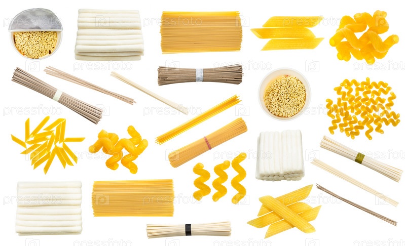 Набор различной сухой лапши и макарон изолированы