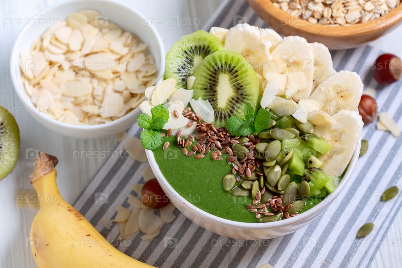 Вкусный зеленый коктейль в миске