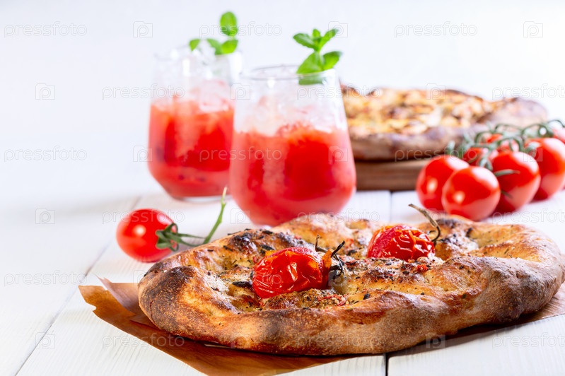 Итальянский тонкий хлеб (фокачча) с помидорами