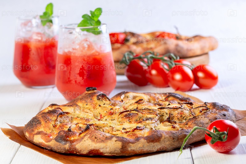 Итальянские лепешки (фокачча) с луком и зеленью