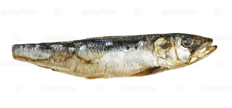 Одиночная копченая тихоокеанская сардина, изолированная на белом