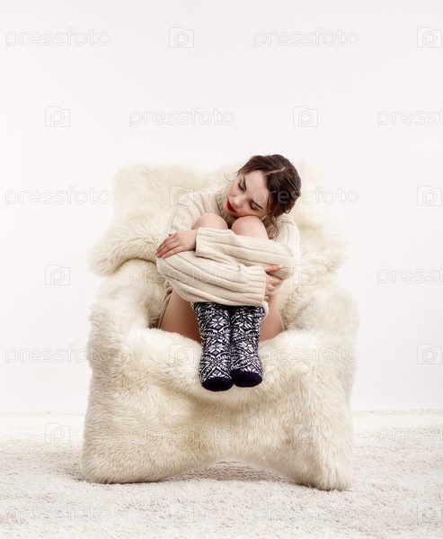 Брюнетка на пушистом кресле