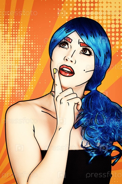 Портрет молодой женщины в стиле комического поп-арта