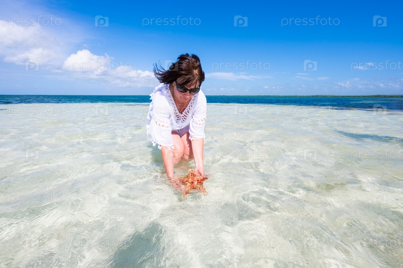 Женщина в море с морской звездой