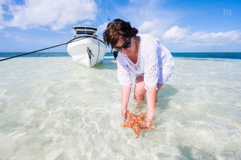 Женщина в море с морской звездой