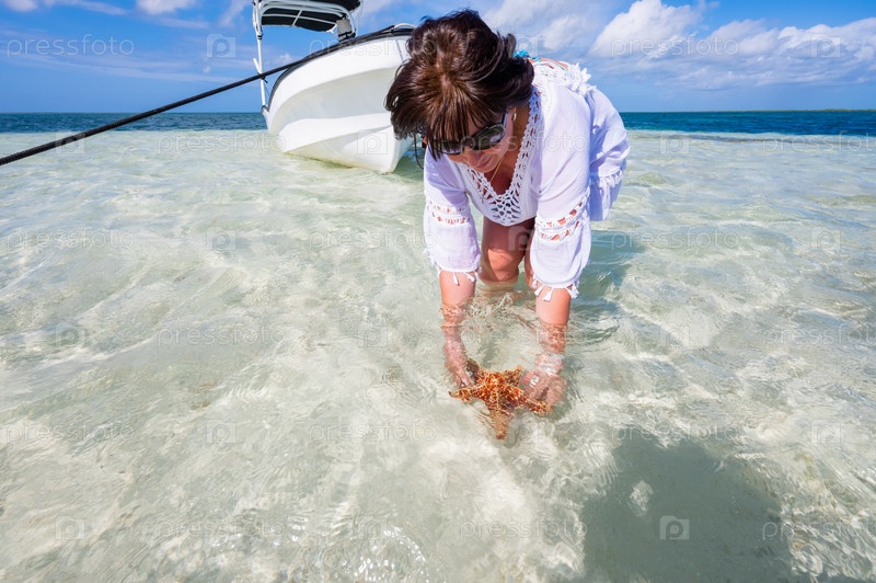 Женщина в море с морской звездой