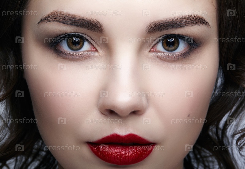 Крупным планом макро портрет женского лица. Лицо женщины с дневным макияжем