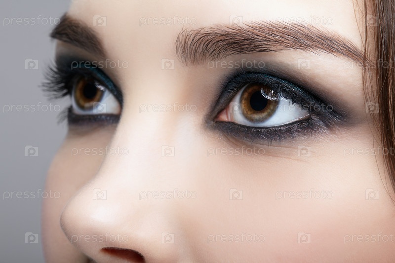 Макрос крупным планом человеческого женского лица. Женщина с естественным макияжем лица вечерней моды