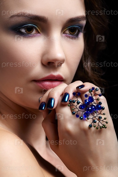 Портрет красивой брюнетки на черном фоне