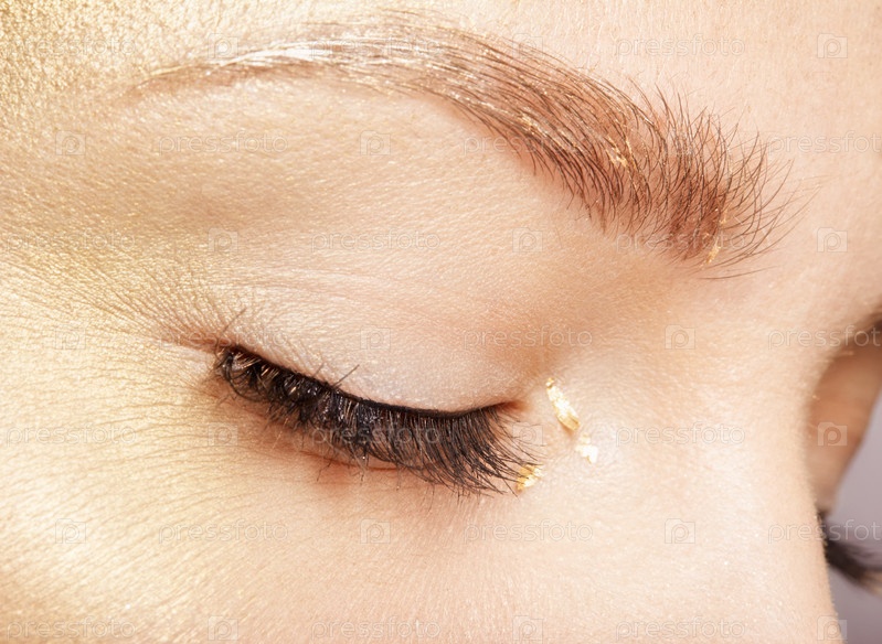 Женские закрытые глаза. Крупным планом макро портрет красоты лица молодой женщины