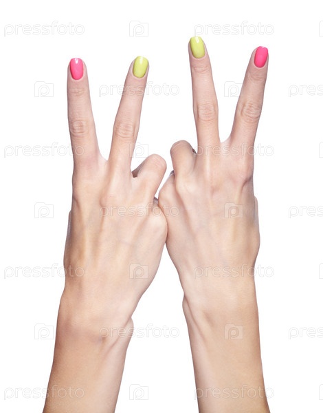 Женские пальцы с причудливым маникюром ногтей изолированы на белом фоне