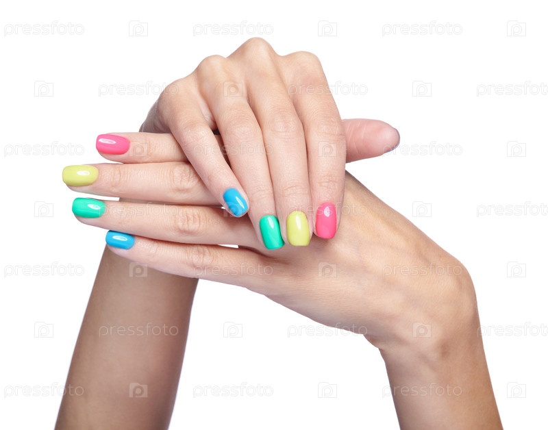 Женские пальцы с причудливым маникюром ногтей изолированы на белом фоне