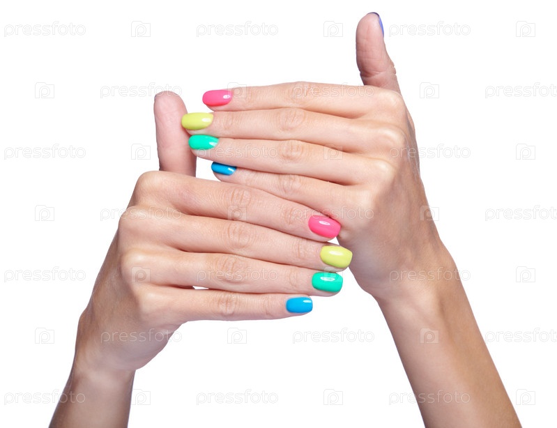 Женские пальцы с причудливым маникюром ногтей изолированы на белом фоне