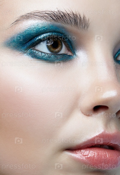 Крупным планом макро портрет женского лица. Женщина с вечерним макияжем