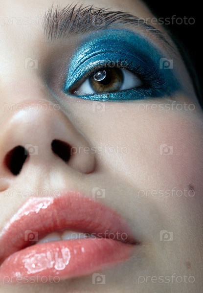Крупным планом макро портрет женского лица. Женщина с вечерним макияжем