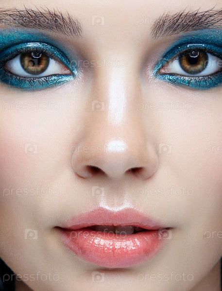 Крупным планом макро портрет женского лица. Женщина с вечерним макияжем