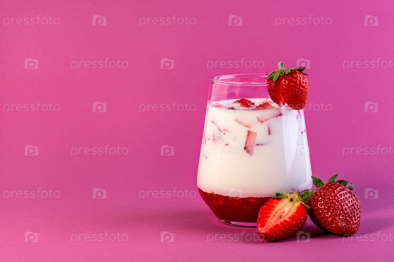 Клубничное молоко в стакане