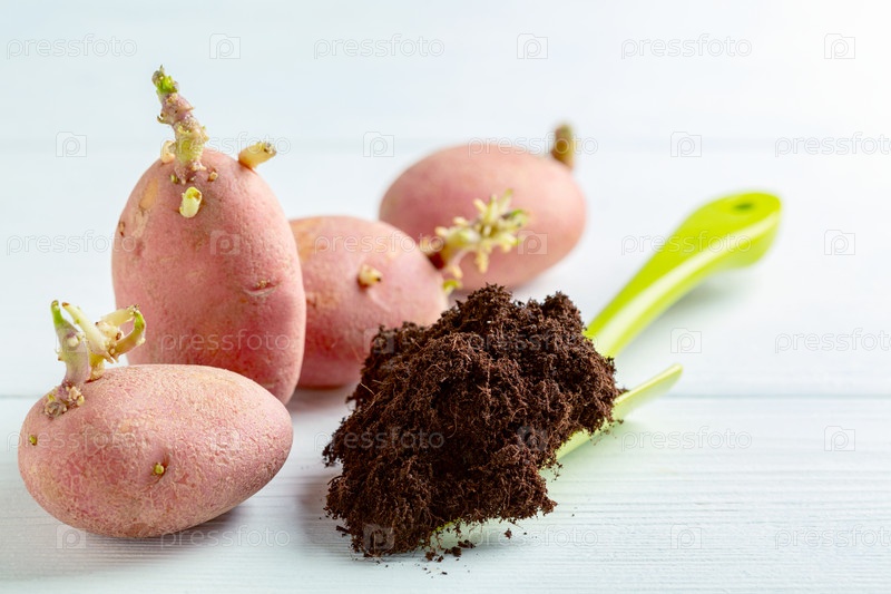 Проросший картофель и почва для посадки