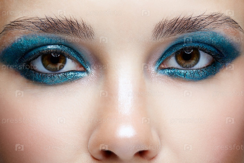 Крупным планом макро портрет женского лица. Женщина с вечерним макияжем