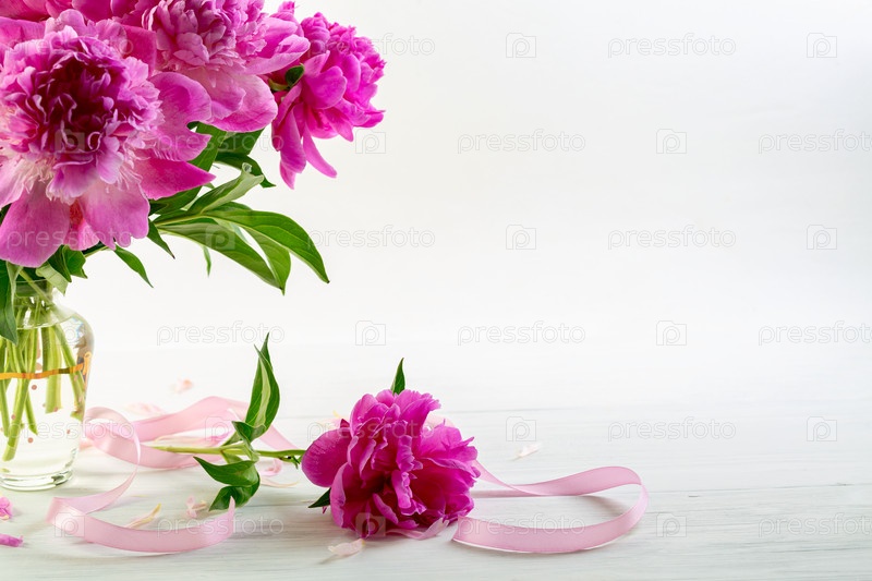 Шикарные розовые пионы с атласной лентой