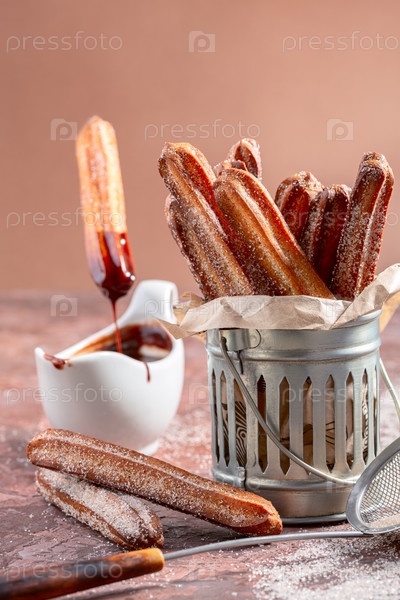 Традиционные палочки чуррос с корицей и шоколадом