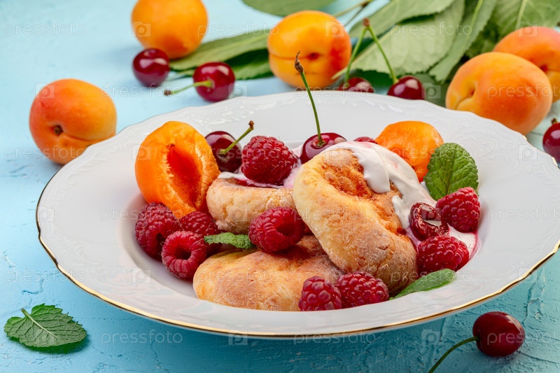 Оладьи из творога с ягодами и фруктами