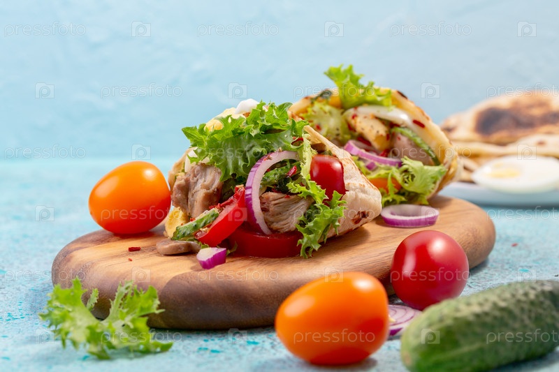 Пита с начинкой из филе индейки, зеленого салата и овощей