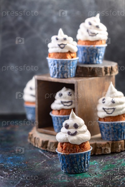 Забавные кексы-призраки. Идея еды на Хэллоуин
