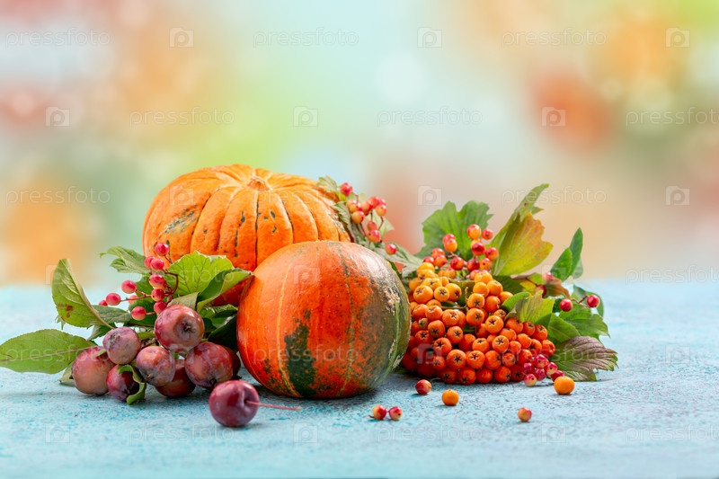 Осенняя композиция из тыквы и веток рябины с калиной