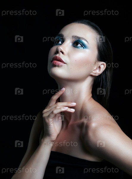 Молодая женщина с идеальной кожей и сине-зелеными дымчатыми тенями для глаз