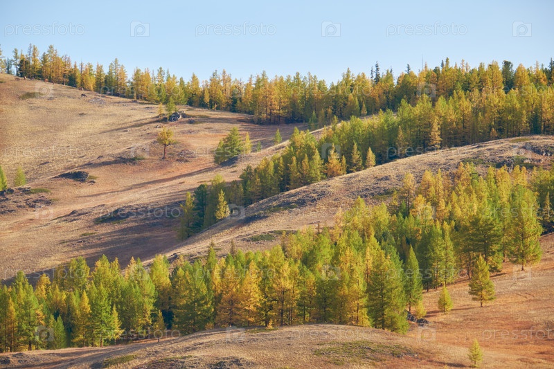 Эштыкельское плато с лиственницами в осенний сезон