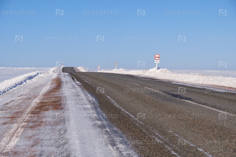 Зимняя дорога и деревья под снегом на Алтае