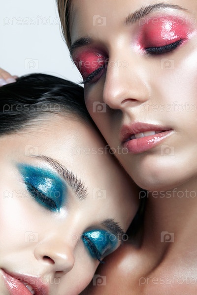 Крупный план блондинок и брюнеток. Концепция женской дружбы
